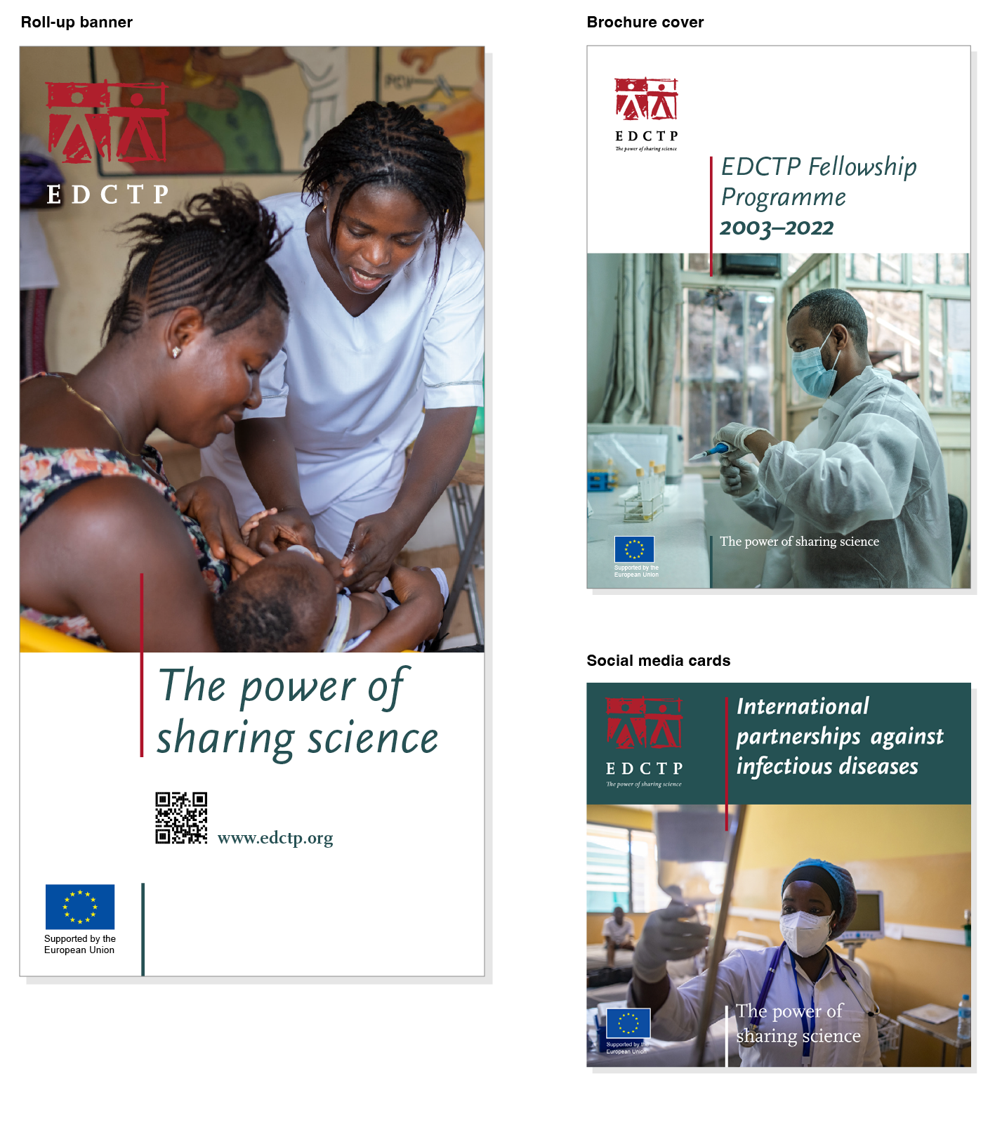 An important means of EDCTP’s communication is the use of photos that tell the stories of projects funded by EDCTP. That is why we developed a corporate design that places photos prominently in the foreground.
